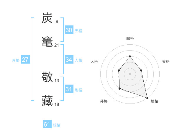 炭竈 敬藏さんの総格は61画の3点!