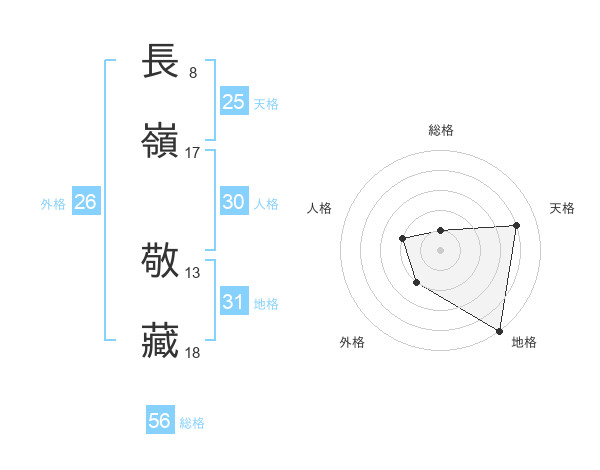 長嶺 敬藏さんの天格は25画の4点!