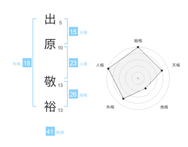 出原 敬裕さんの外格は18画の4点!