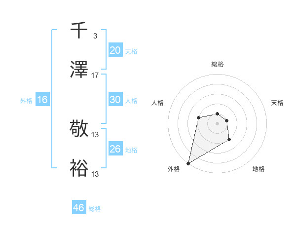 千澤 敬裕さんを姓名の画数から五運を鑑定