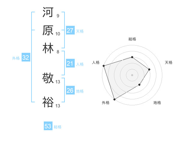 河原林 敬裕さんを姓名の画数から五運を鑑定