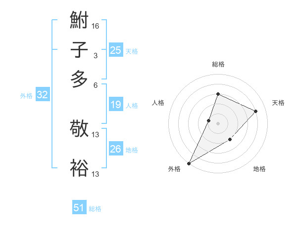 鮒子多 敬裕さんの総格は51画の3点!