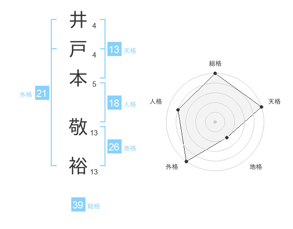 井戸本 敬裕さんを姓名の画数から五運を鑑定