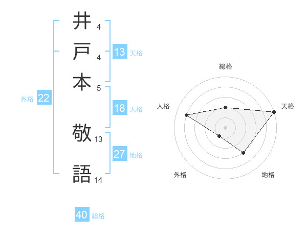 井戸本 敬語さんを姓名の画数から五運を鑑定