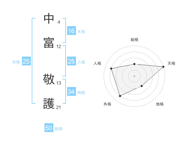 中富 敬護さんの総格は50画の2点!