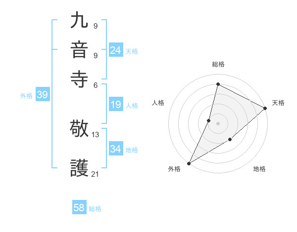 九音寺 敬護さんの総格は58画の4点!