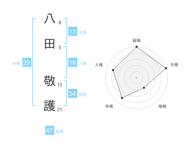 八田 敬護さんの総格は47画の5点!