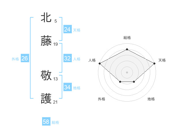 北藤 敬護さんを姓名の画数から五運を鑑定