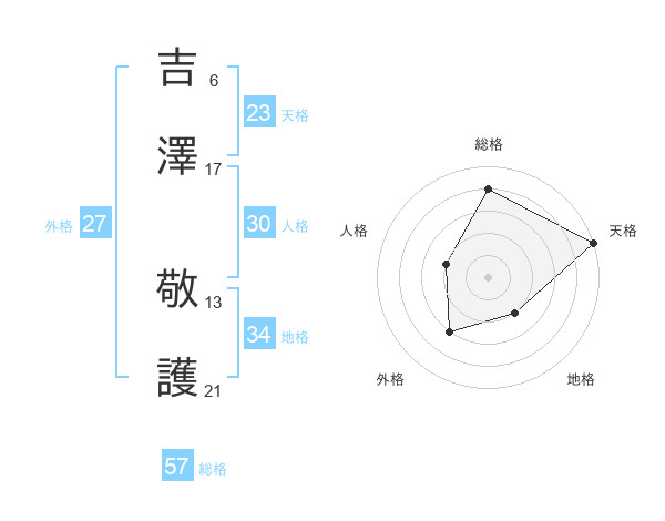 吉澤 敬護さんの総格は57画の4点!