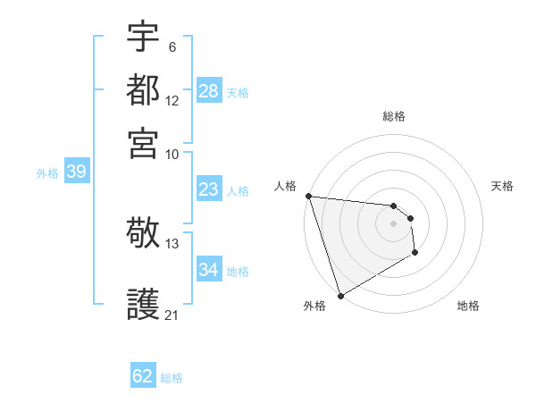 宇都宮 敬護さんを姓名の画数から五運を鑑定
