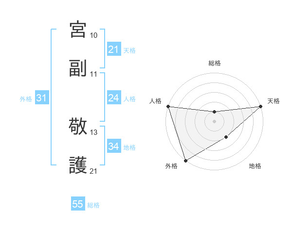 宮副 敬護さんの天格は21画の5点!