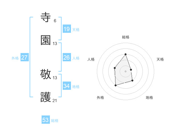 寺園 敬護さんを姓名の画数から五運を鑑定