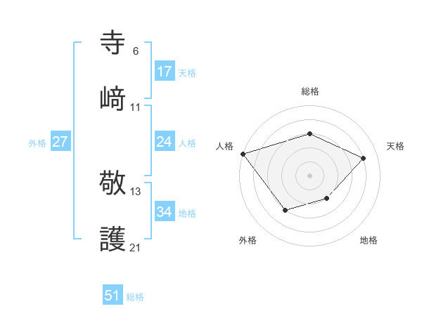 寺﨑 敬護さんの総格は51画の3点!