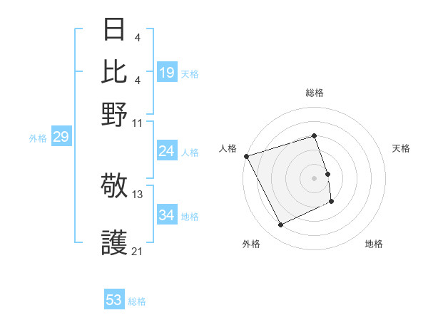 日比野 敬護さんを姓名の画数から五運を鑑定