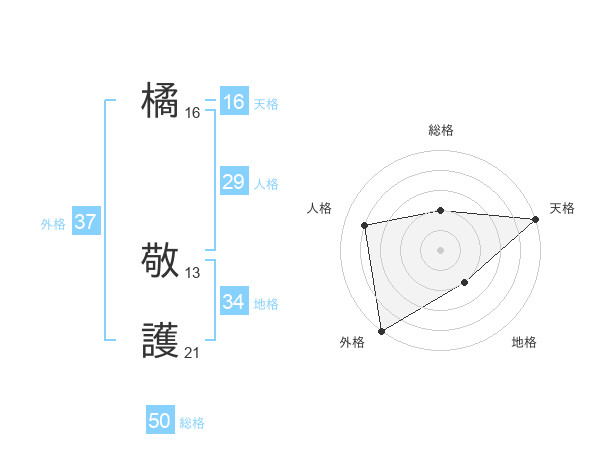 橘 敬護さんの総格は50画の2点!