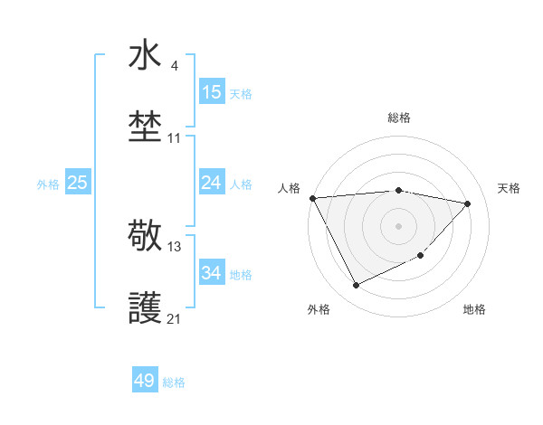 水埜 敬護さんを姓名の画数から五運を鑑定
