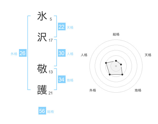氷沢 敬護さんの総格は56画の1点!