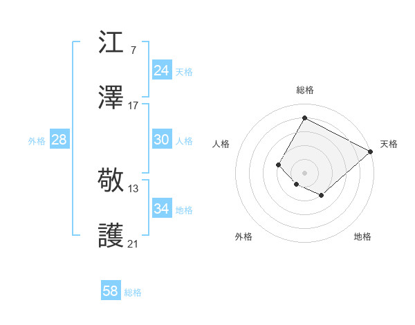 江澤 敬護さんを姓名の画数から五運を鑑定