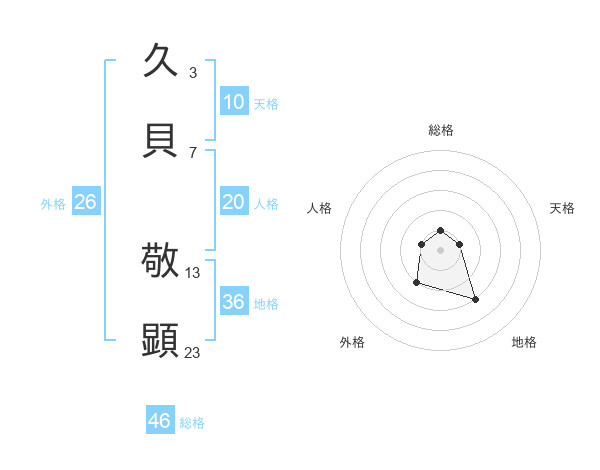 久貝 敬顕さんを姓名の画数から五運を鑑定