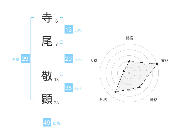 寺尾 敬顕さんの天格は13画の5点!