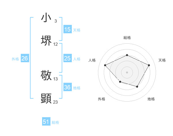 小堺 敬顕さんの総格は51画の3点!