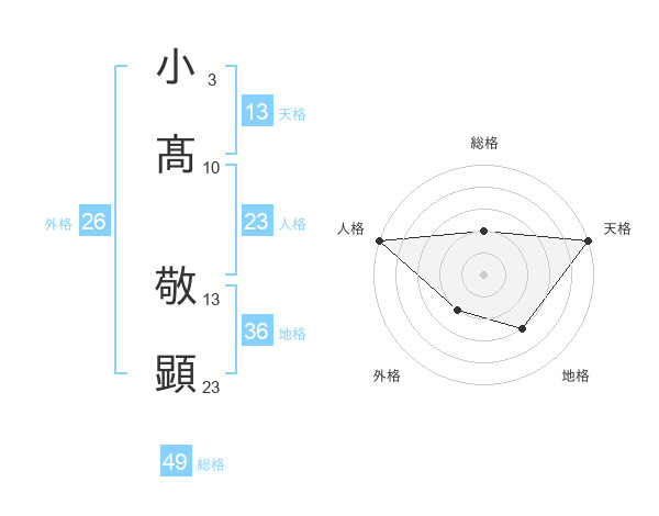 小髙 敬顕さんの総格は49画の2点!