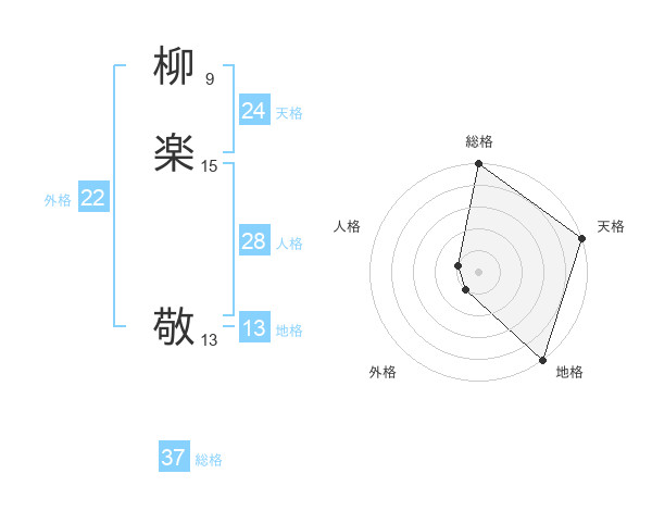 柳楽 敬さんの総格は37画の5点!
