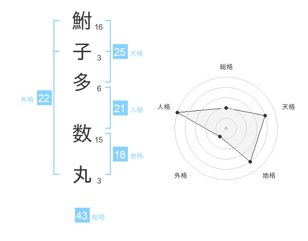 鮒子多 数丸さんを姓名の画数から五運を鑑定