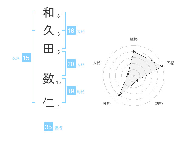 和久田 数仁さんを姓名の画数から五運を鑑定