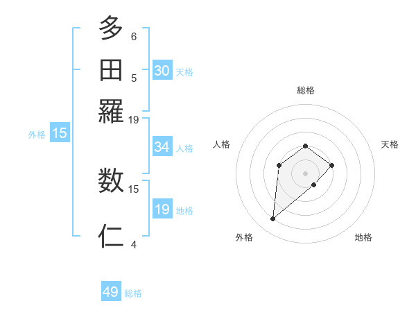 多田羅 数仁さんを姓名の画数から五運を鑑定