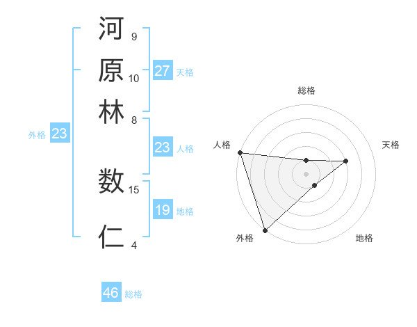 河原林 数仁さんを姓名の画数から五運を鑑定