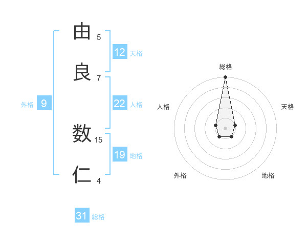 由良 数仁さんの総格は31画の5点!
