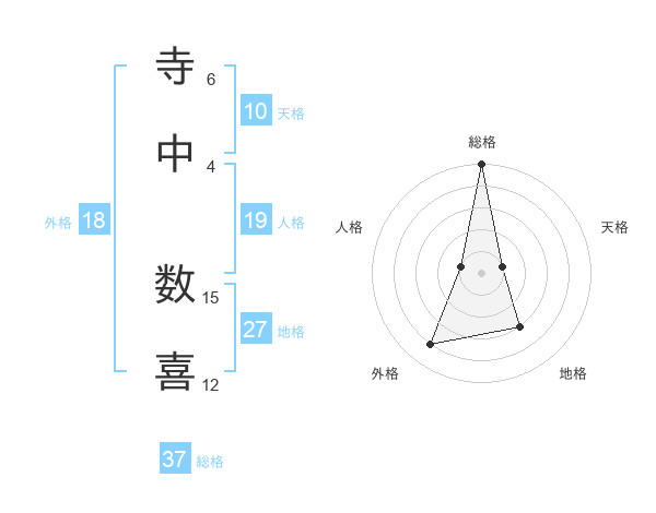 寺中 数喜さんの総格は37画の5点!