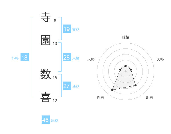 寺園 数喜さんの外格は18画の4点!