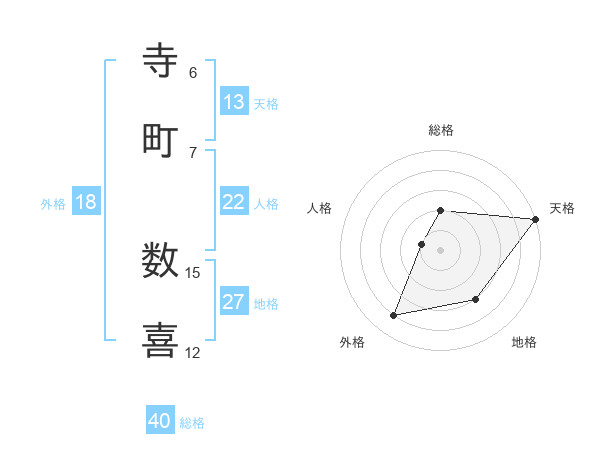 寺町 数喜さんを姓名の画数から五運を鑑定