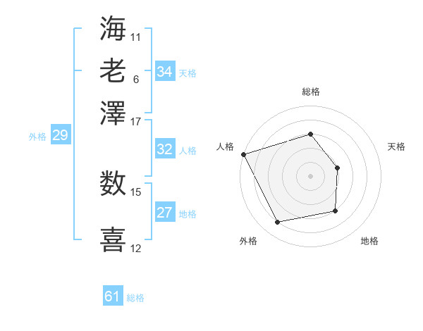 海老澤 数喜さんの総格は61画の3点!