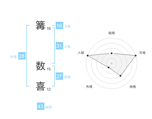 篝 数喜さんの天格は16画の5点!
