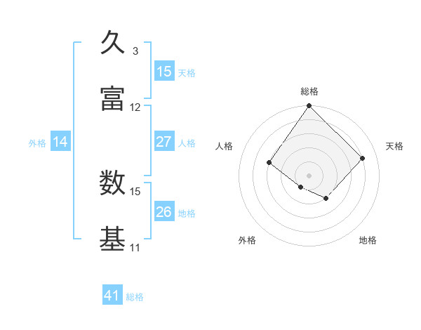 久富 数基さんの天格は15画の4点!
