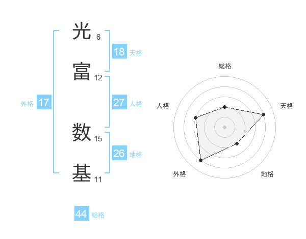光富 数基さんの総格は44画の2点!