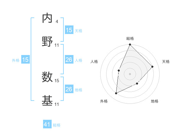 内野 数基さんの天格は15画の4点!