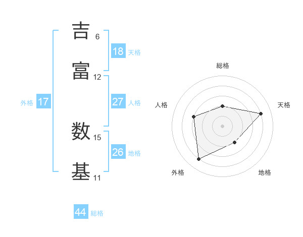 家系が持つ宿命的な運勢を表します。祖先から受け継いだ苗字ですので自分の力が及びません。家柄を象徴します。