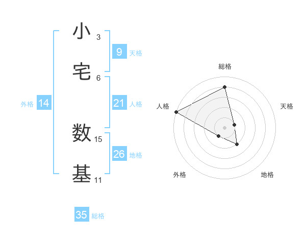 小宅 数基さんの総格は35画の4点!