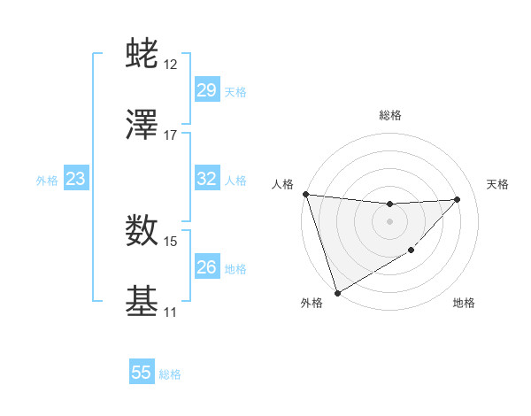 蛯澤 数基さんの外格は23画の5点!