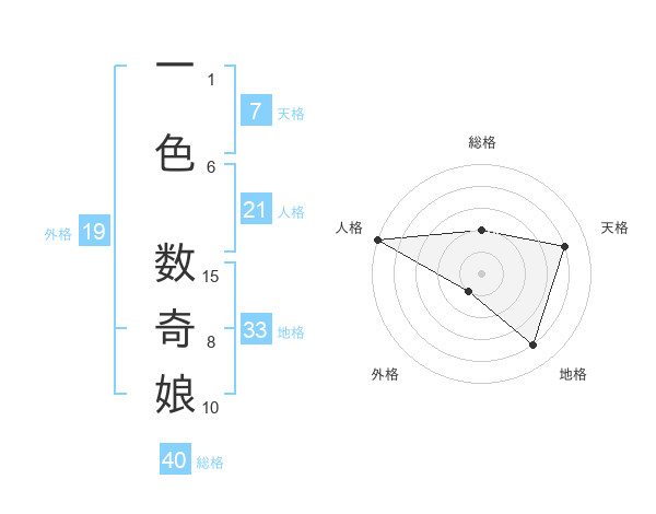 一色 数奇娘さんを姓名の画数から五運を鑑定
