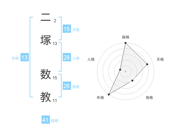二塚 数教さんの天格は15画の4点!