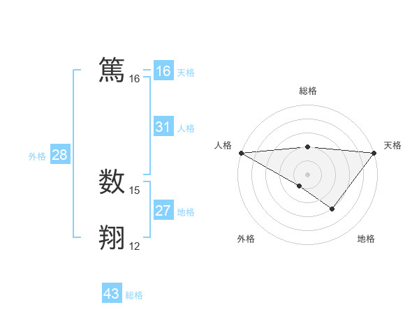 篤 数翔さんの天格は16画の5点!