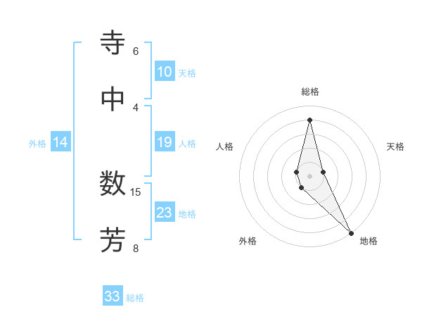 寺中 数芳さんを姓名の画数から五運を鑑定