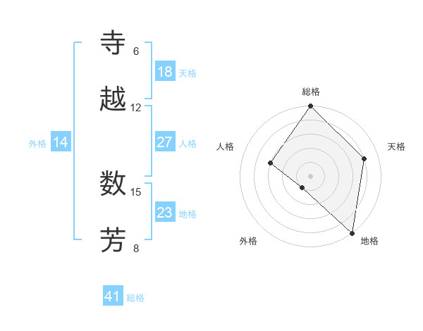 寺越 数芳さんの総格は41画の5点!