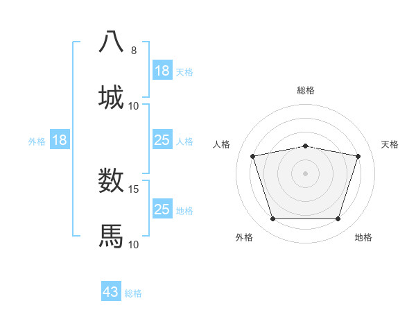 八城 数馬さんの地格は25画の4点!