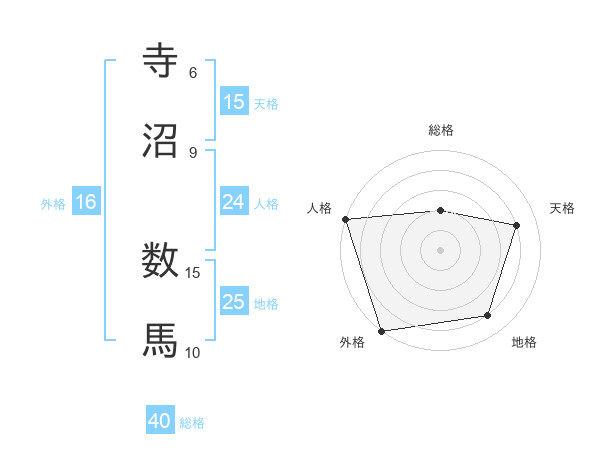 寺沼 数馬さんの地格は25画の4点!